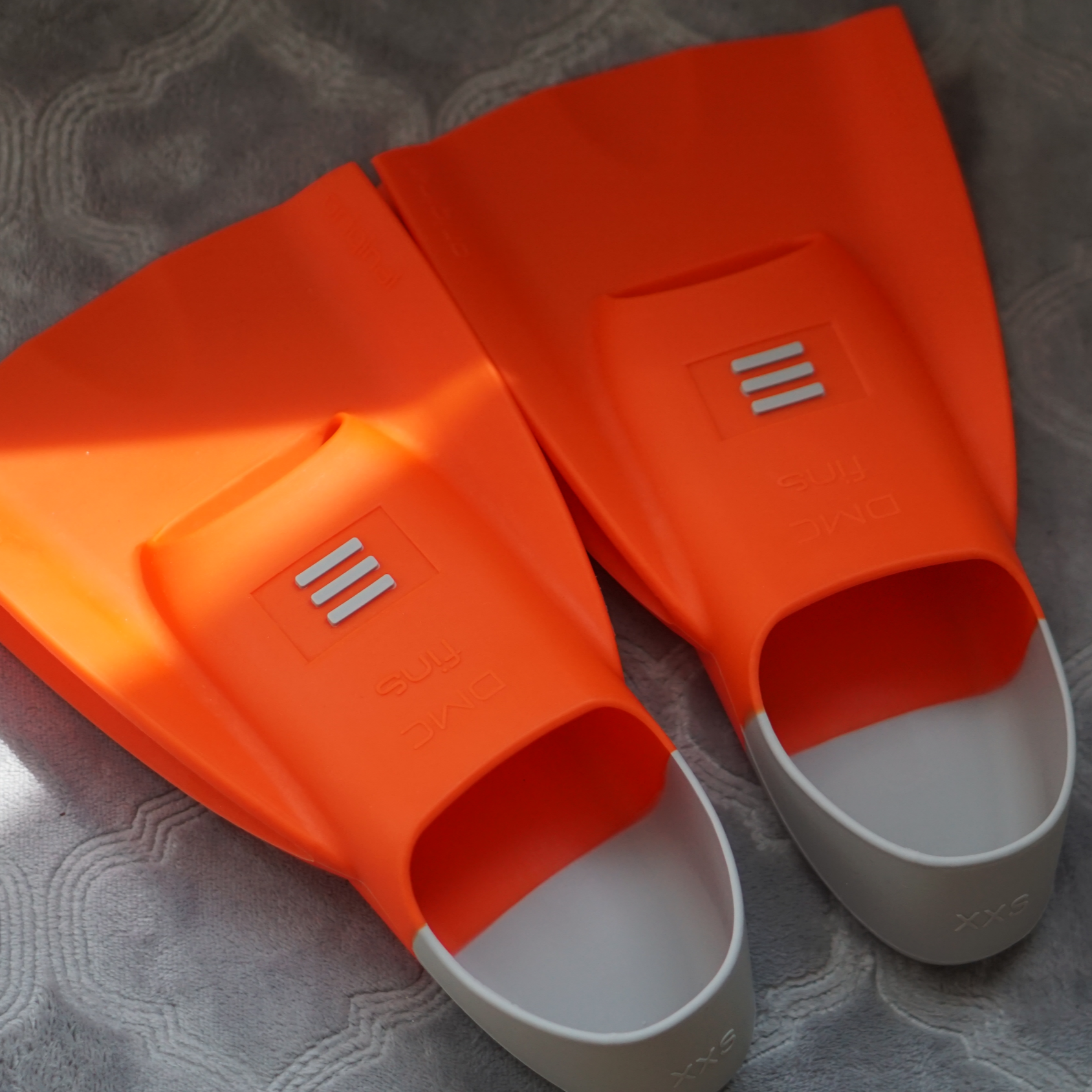 구두 사이즈에서 한 치수 작은 사이즈를 골랐습니다. 저는 발 볼이 넓고 구두는 240mm를 신는데, 오리발은 235mm 사이즈로 구매했습니다. xxs로 표기된 사이즈로 구매했습니다. 핀이 실리콘 재질이라 늘어나는 부분이 있으니 작은 사이즈로 구매해도 꼭 끼는 느낌없이 잘 맞았습니다. 아래 사이즈 차트는 dmc 코리아의 상세페이지에 있는 것을 가져왔습니다. 제 신발사이즈인 240은 xs이지만 한치수 작은 xxs가 맞았습니다. 발볼에 따라 차이가 있으니 참고하시기 바랍니다.