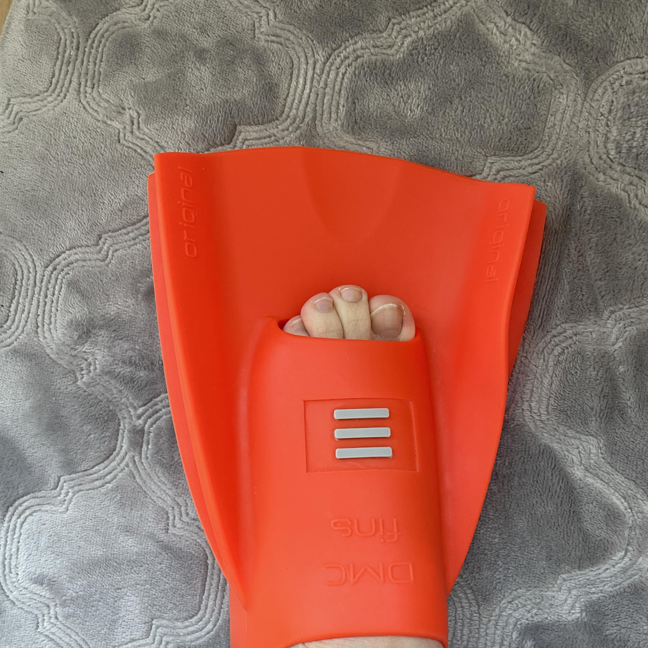 구두 사이즈에서 한 치수 작은 사이즈를 골랐습니다. 저는 발 볼이 넓고 구두는 240mm를 신는데, 오리발은 235mm 사이즈로 구매했습니다. xxs로 표기된 사이즈로 구매했습니다. 핀이 실리콘 재질이라 늘어나는 부분이 있으니 작은 사이즈로 구매해도 꼭 끼는 느낌없이 잘 맞았습니다. 아래 사이즈 차트는 dmc 코리아의 상세페이지에 있는 것을 가져왔습니다. 제 신발사이즈인 240은 xs이지만 한치수 작은 xxs가 맞았습니다. 발볼에 따라 차이가 있으니 참고하시기 바랍니다.
