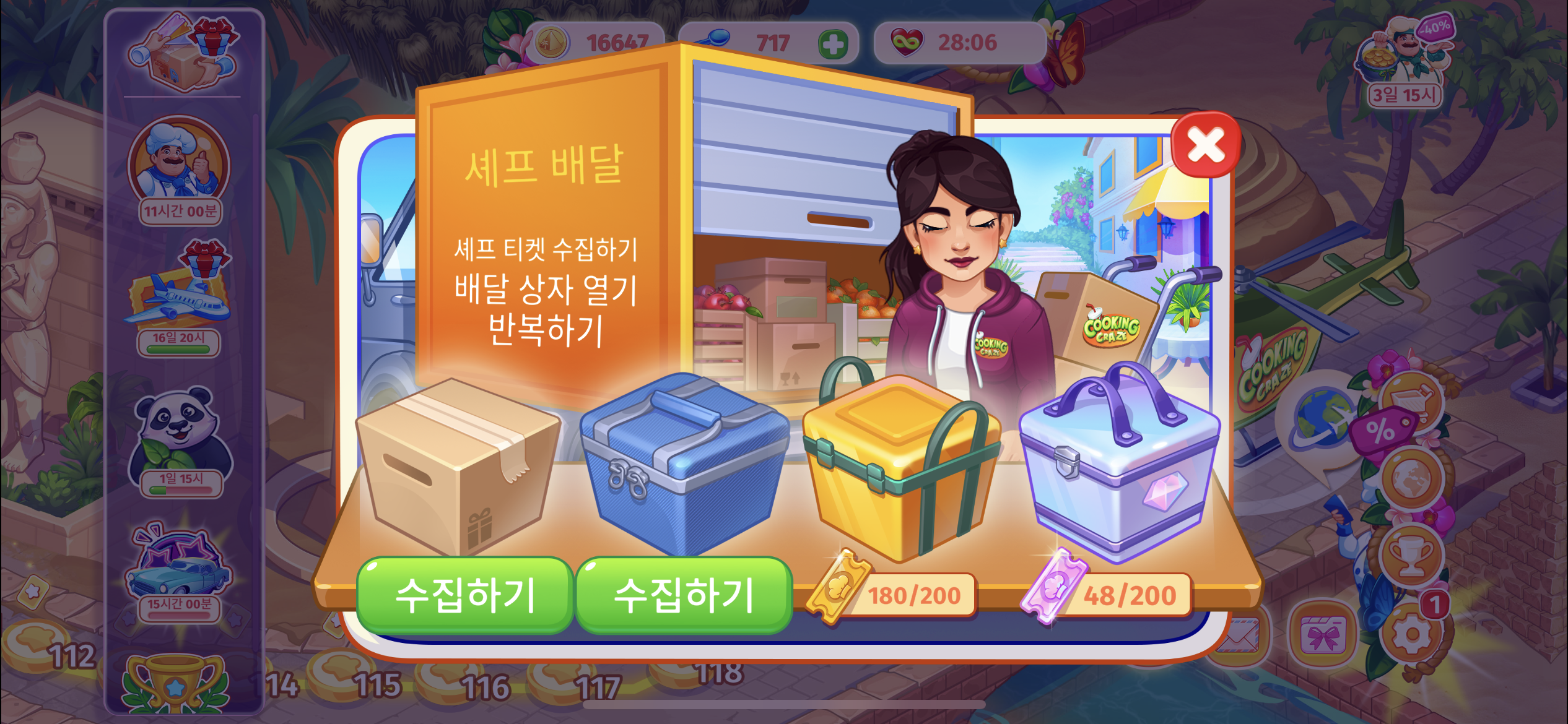 셰프배달, 매일 도전 과제, 맛집 여행 보상은 하다 보면 저절로 되니