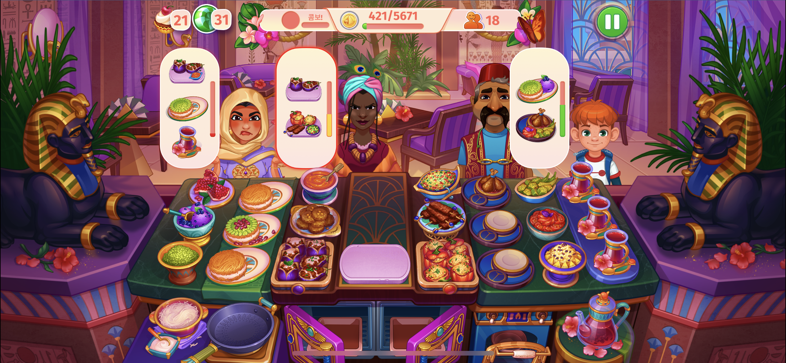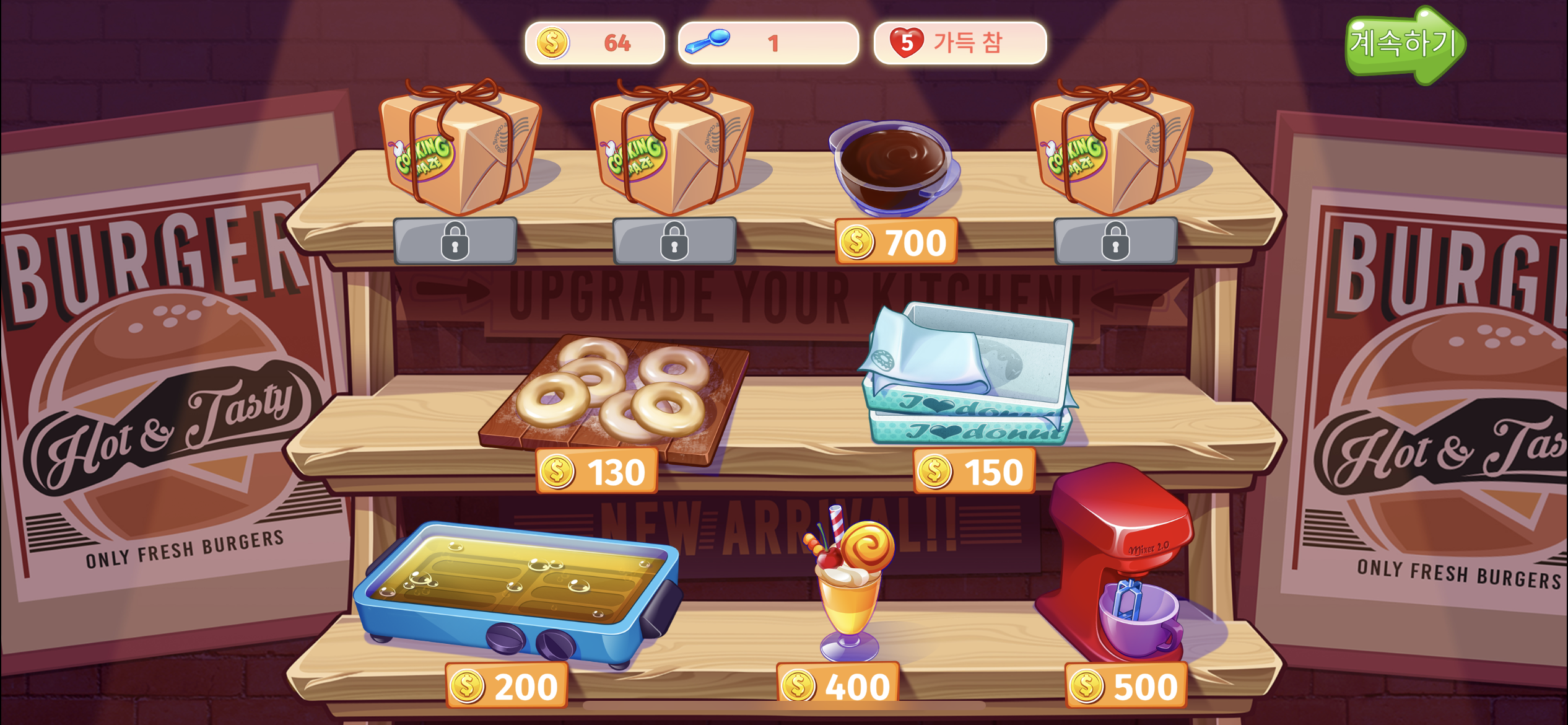 이렇게 돈을 빨리 모아 요리를 업그레이드 시켜 게임을 빠르게 클리어합니다.
