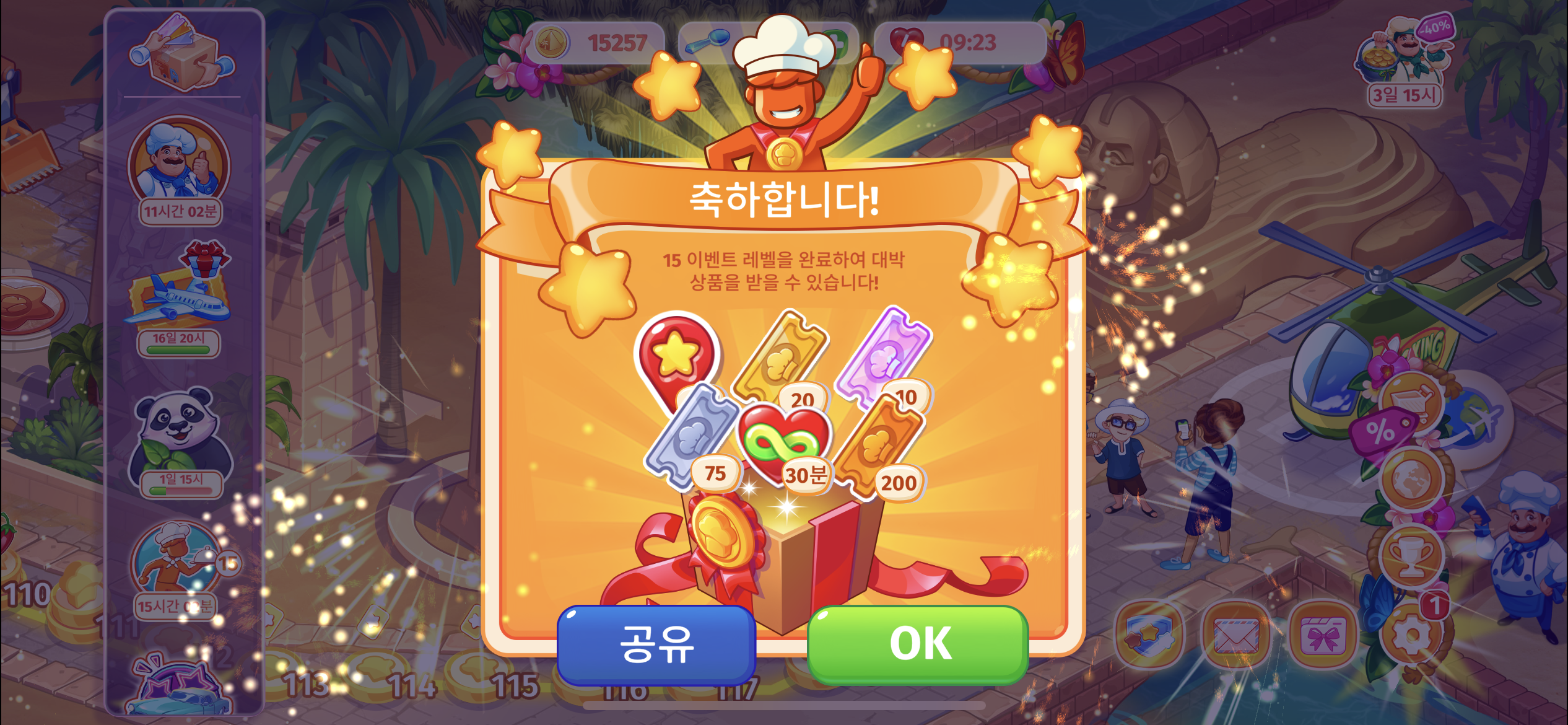 120 레벨까지 완수하면 다른 나라의 레스토랑으로 떠납니다.
