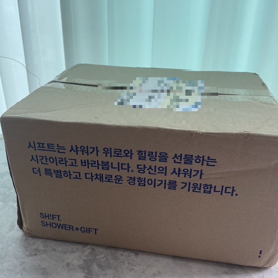 택배 언박싱입니다. 샤워하는 힐링의 시간을 선물 한다는 것이 시프트 브랜드의 모토인가 봅니다. 샤워+선물이라고 적혀있네요.