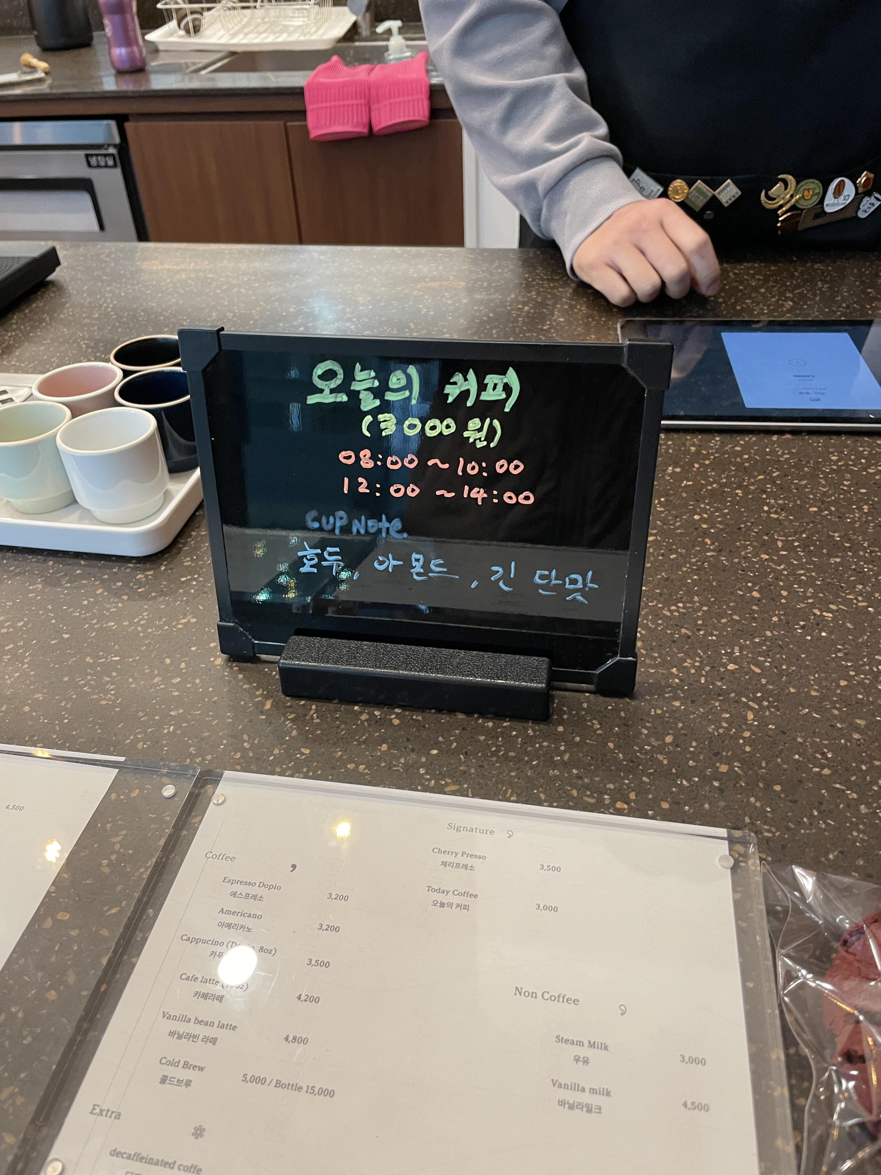 오늘의 커피는 8:00-10:00, 12:00~13:30까지만 이용할 수 있다고 합니다.