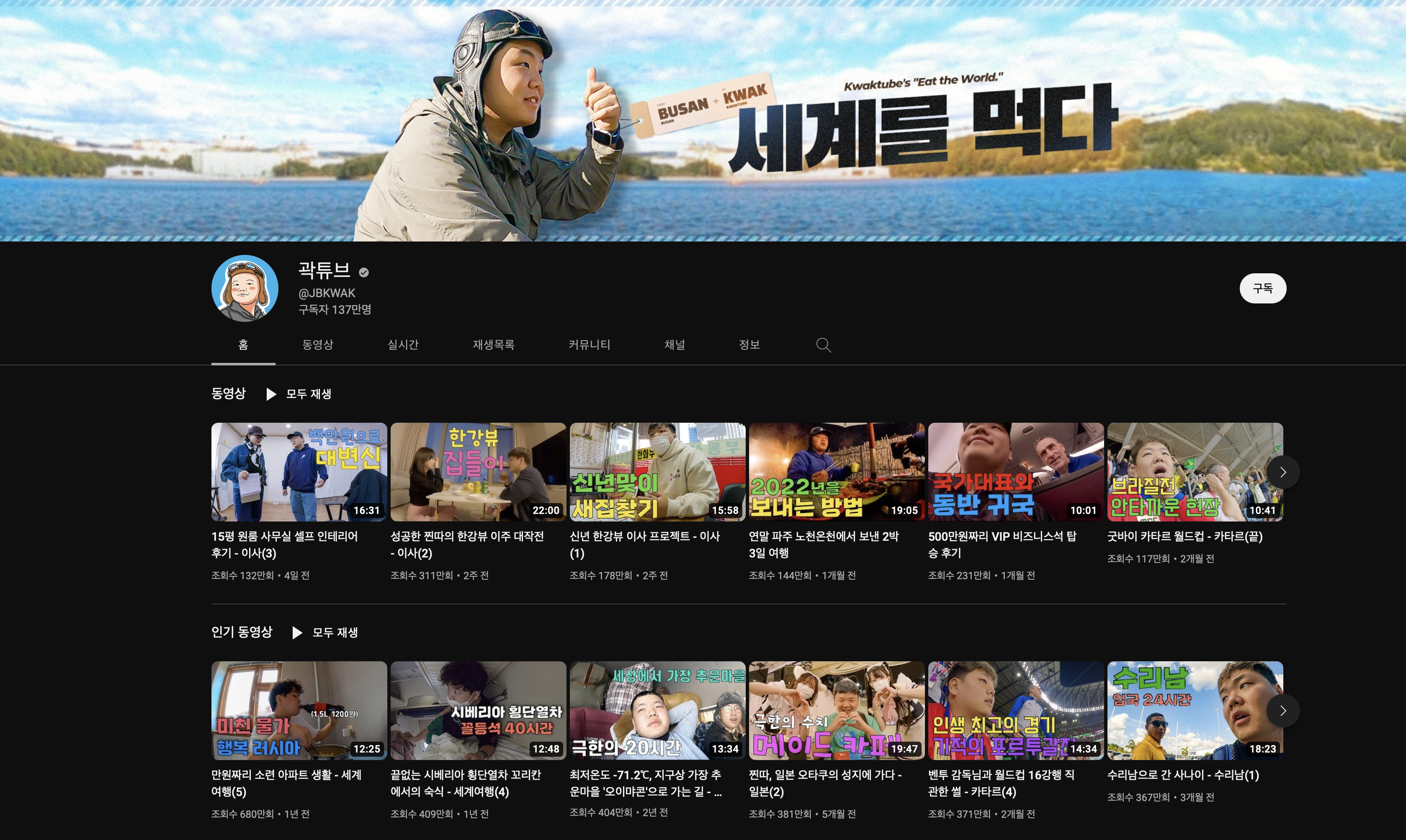 빠니보틀 다음으로 많은 구독자를 보유(현재 136만 명)를 보유하고 있는 곽튜브는 인지도면에서 빠니보틀보다 앞서고 있는 듯합니다. 최근 라디오스타, 유퀴즈 온더블럭에 출연하여 대중들에게 얼굴을 알렸습니다.