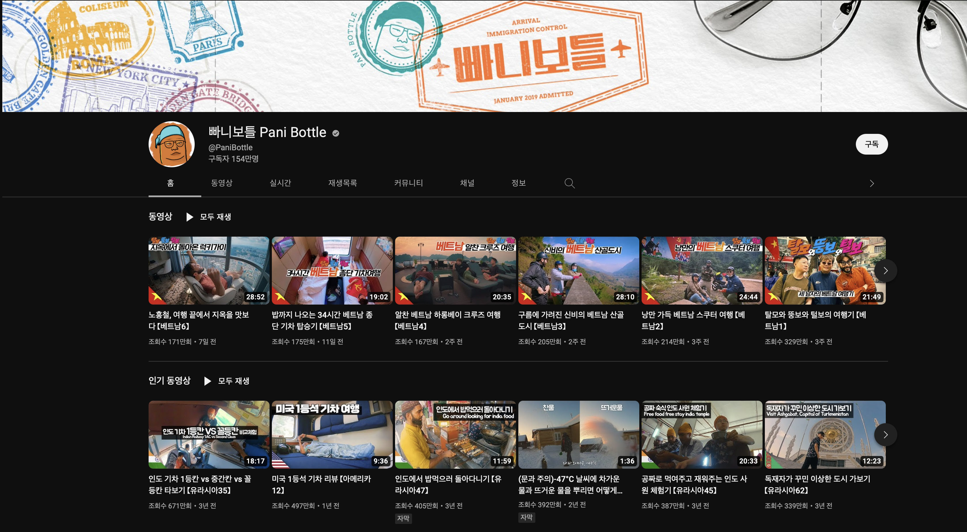 여행 유튜버 중 가장 많은 구독자 수(현재 153만 명)를 보유하고 있는 빠니 보틀은 2015년부터 여행 영상을 업로드하였습니다. 빠니 보틀이라는 말은 인도 여행 중 들은 단어로 닉네임으로 선택하게 되었다고 합니다. '빠니'는 힌디어로 물이라는 뜻이고 보틀은 영어 bottle로 '물병'이 닉네임이 되겠습니다.