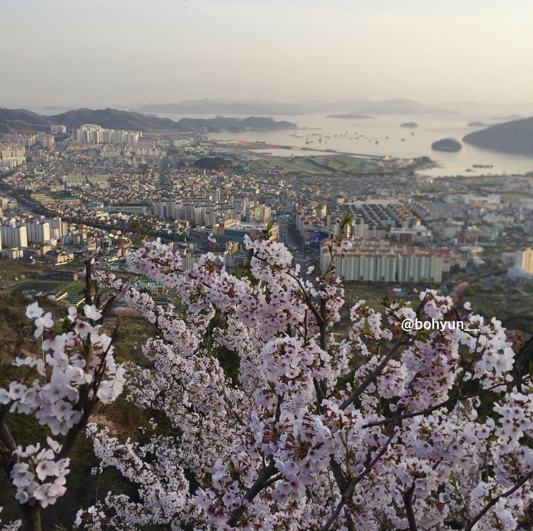 높은 곳에서 바라다본 핑크빛은 어떨까요. 드라이브코스로도 유명한 안민고개에서 탁 트인 전망과 예쁜 벚꽃을 감상하는 것을 추천합니다.