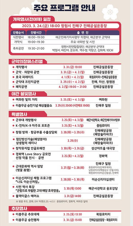 진해군항제 주요프로그램 "벚꽃으로 여는 새로운 세상"